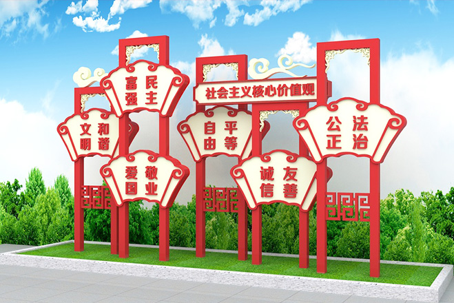河南核心價(jià)值觀雕塑焊接完工 河南200臺(tái)路名牌燈箱效果圖